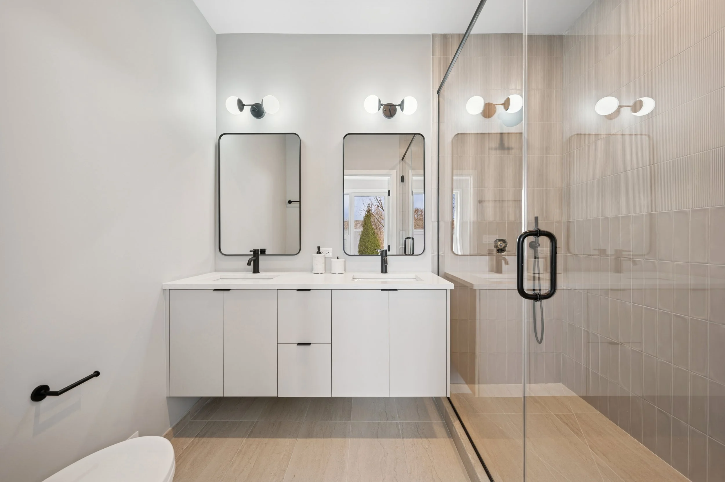 All plumbing + accessories are matte black.